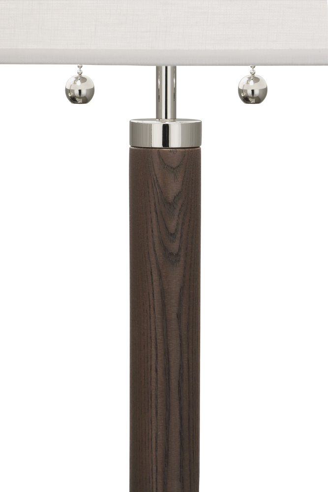 Polished Nickel Finish with Dark Walnut Finished Wood Column Dexter Table Lamp with Oyster Linen Shade - Polished, smooth and impressive, our Dexter table lamp is an elevated style based on retro elements Inspired by iconic Mid-Century Modern houses and decor in Palm Springs, Dexter exudes a cool, chic vibe that is timeless and fresh.
