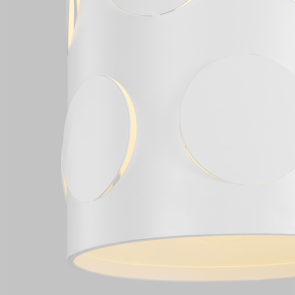 Dots are iconic to the kate spade brand—a simple and playful graphic motif. Dottie takes an iconic kate spade dot motif and cuts it into metal—creating a playful ambient light effect. A classic metal drum shade with an extra twist of perforated pattern. Use this fixture in place of any classic drum shade application, above a dining table, in a nook, or above an island.