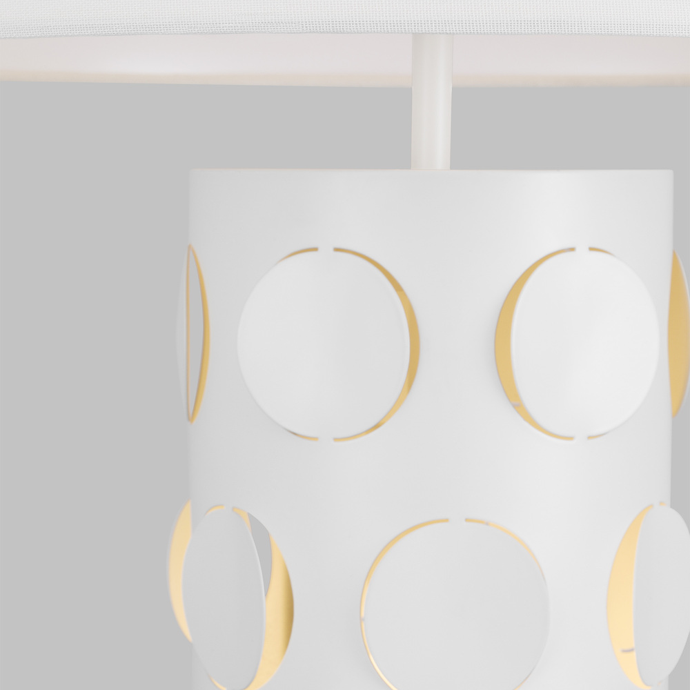 Dots are iconic to the kate spade brand—a simple and playful graphic motif. Dottie takes an iconic kate spade dot motif and cuts it into metal—creating a playful ambient light effect. A classic metal drum shade with an extra twist of perforated pattern. We’ve taken an iconic kate spade dot motif and pierced it into metal to create a base of a cylindrical table lamp. The base is illuminated—creating a playful ambient light effect in addition to the glowing drum shade. Use this fixture in any classic table lamp scenario—on either side of a sofa or bed, or in an office or entry as well.