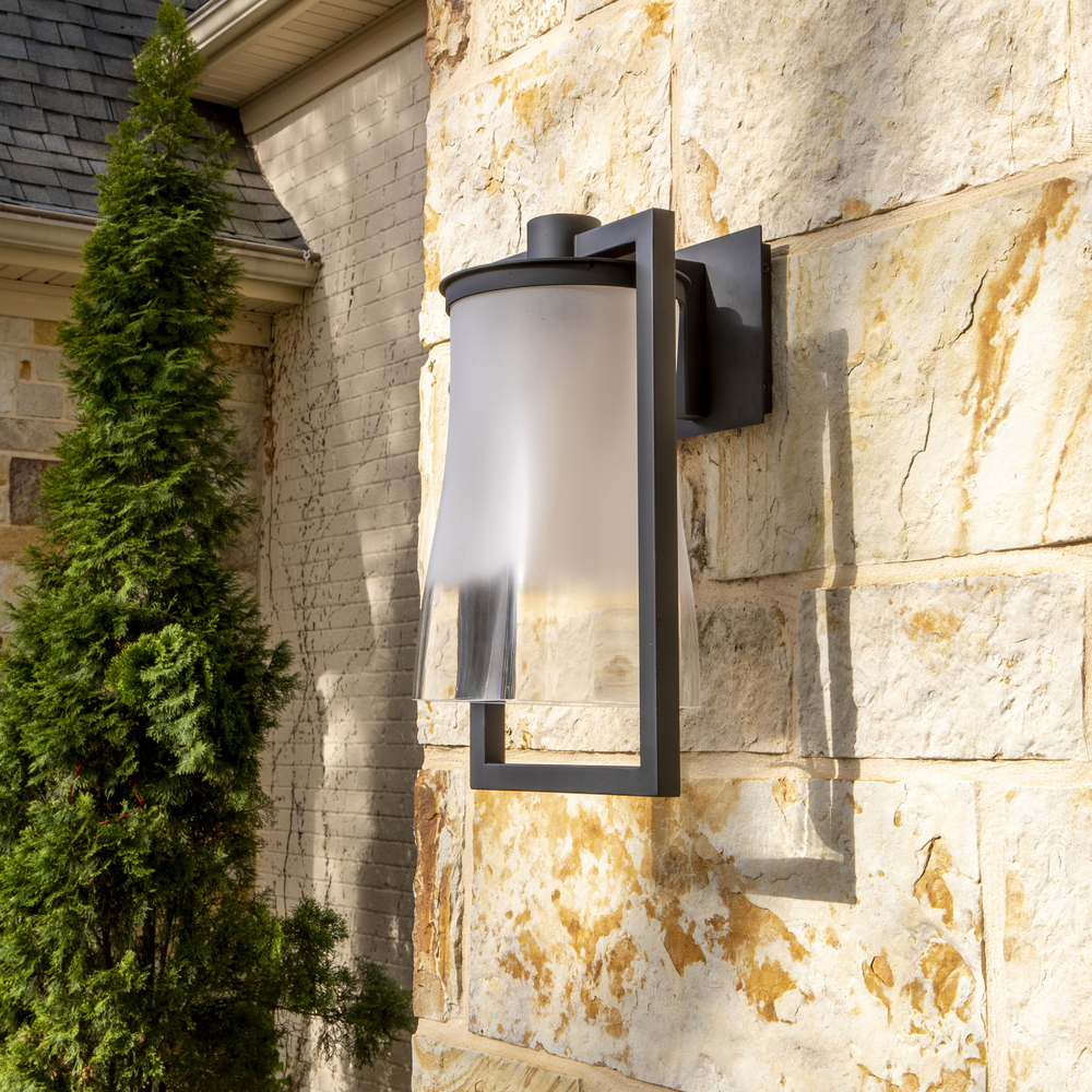 Modern design meets old school charm in this Matte Black finish exterior sconce. The drapped shape of the water glass immolates the irregular beauty of hand blown glass from generations ago.