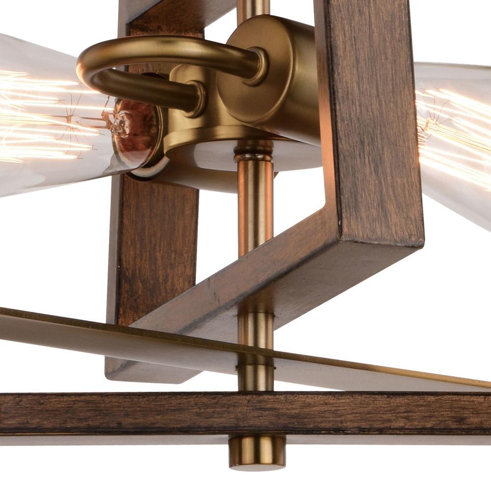 Natural brass and burnished chestnut handsomely showcase the contemporary Dunning collection. Adjustable flat frames float around each light source creating a playful yet comfortable geometric aesthetic. This ceiling light is ideal in any dining, entryway, living or kitchen space for the perfect on trend look.