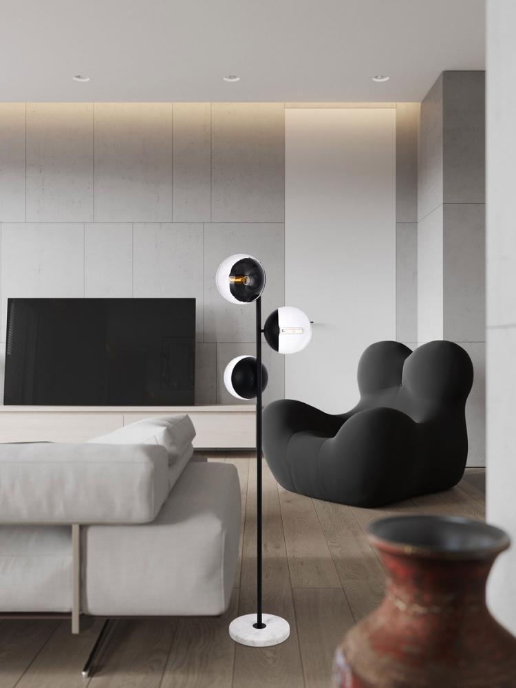 Refined style with a practical design, Eclipse Floor Lamp bring cosmopolitan sophistication anywhere, especially to an entryway, office, bathroom, bedroom, or kitchen. The smooth marble base anchors the floor lamp and comes in a black finish. A touch of color on top of the clear spherical glass shade brings character to this classic style. Living in the big city has never been this easy.
