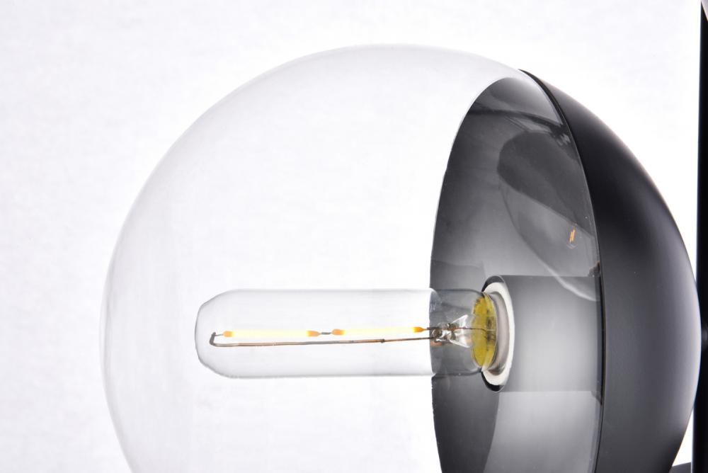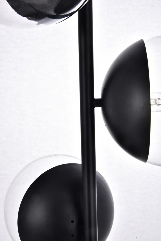 Floor lamp features a black and clear glass.