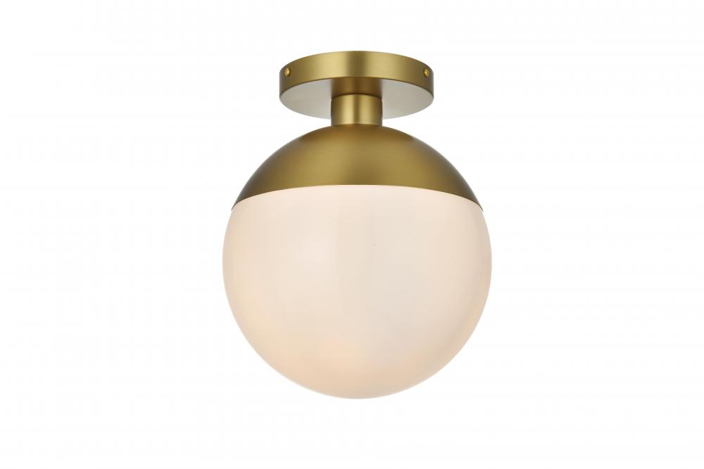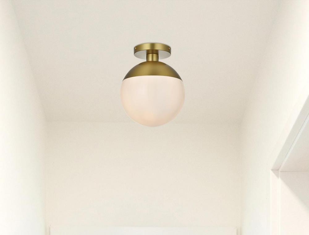 Refined style with a practical design, Eclipse flush mount bring cosmopolitan sophistication anywhere, especially to an entryway, office, bathroom, bedroom, or kitchen. The smooth iron frame features a disk-shaped canopy and comes in a satin gold or chrome finish. A touch of color on top of the clear or frosted white spherical glass shade brings character to this classic style. Living in the big city has never been this easy.