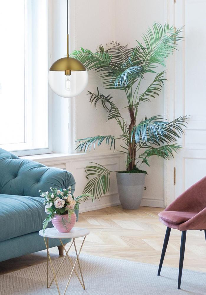 Features a clear glass shade, offering bright, unobstructed light and a clean, modern look.