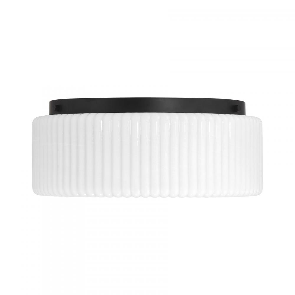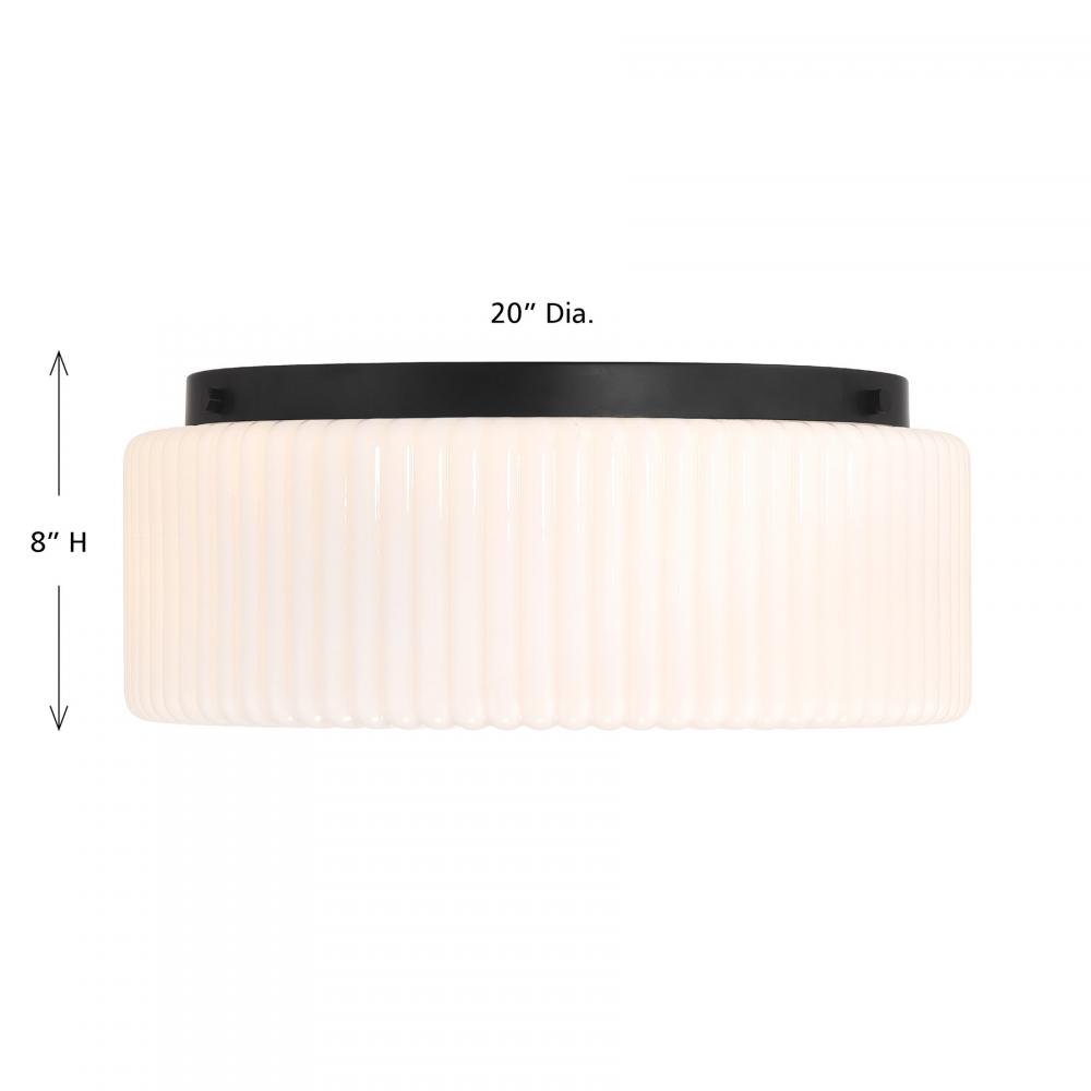 Use the vintage-inspired Savoy House Edgemont 4-light flush mount to add beautiful, vivid brightness to any room! The ribbed shade of strie glass brings in a big dose of eye-catching texture and the Matte Black finish is extremely versatile. Edgemont is 8" in height and 20" in width, making it an excellent option for larger spaces. It uses four standard size bulbs of up to 60 watts per bulb. Bulbs not included.