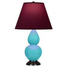 Egg Blue Glazed Ceramic with Deep Patina Bronze Finished Accents Small Double Gourd Accent Lamp with Pearl Dupioni Fabric Shade - Our Double Gourd collection features a simple but gracefully curving silhouette. Available in a wide array of vibrant colors and several different base finishes.