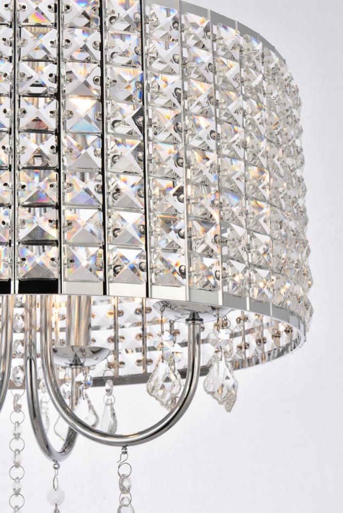Lattice shade decorated with strands of crystals and suspended faceted crystal drops