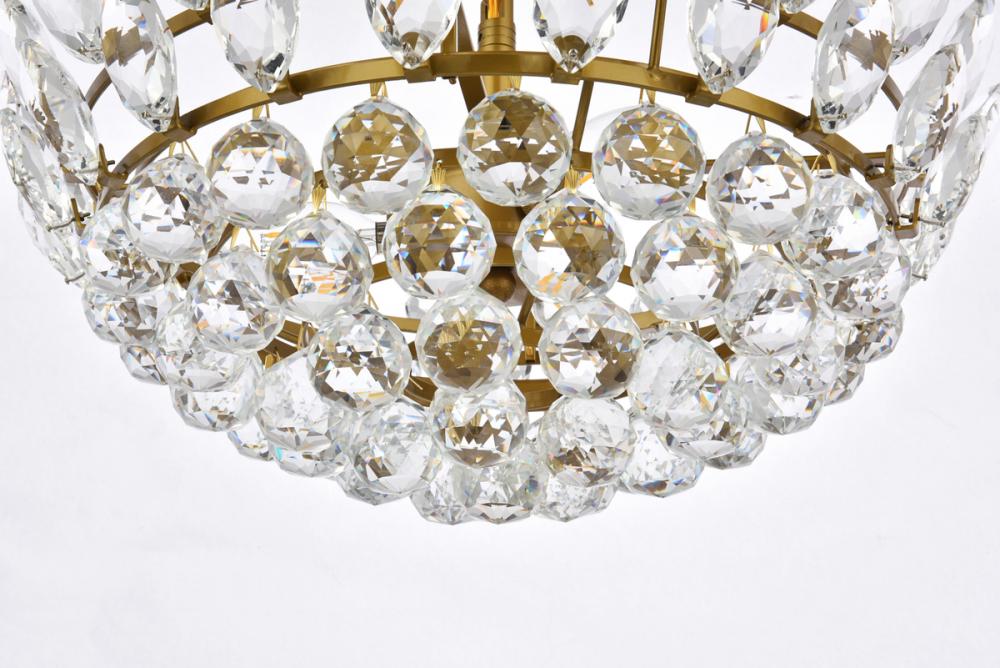 Tiers of clear multi-faceted crystals reflect the soft glow of candelabra bulbs