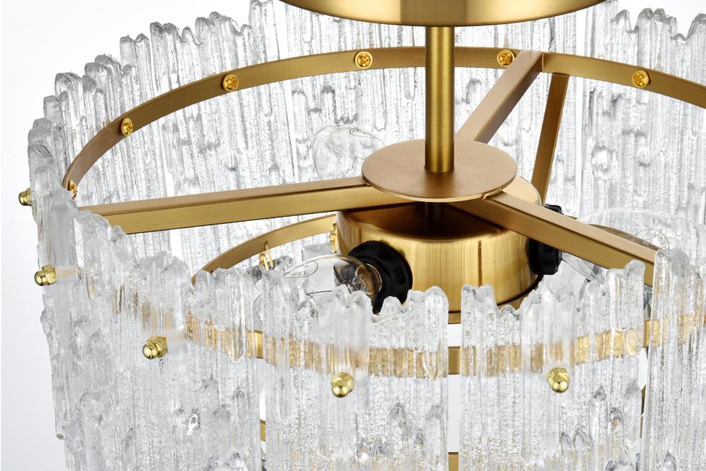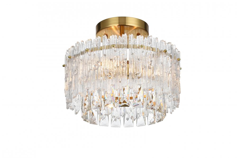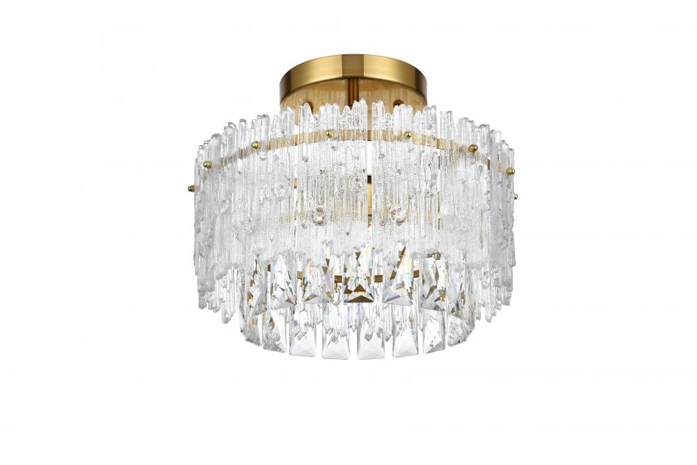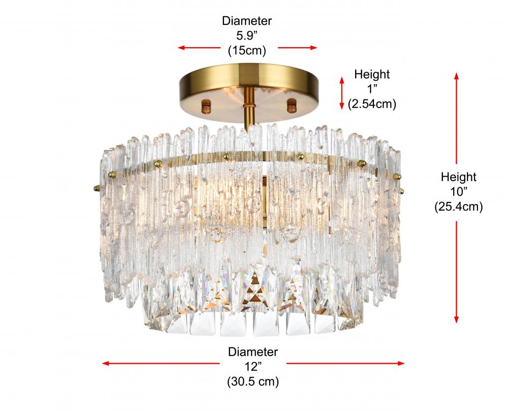 Transform your home with the opulent charm of this indoor lighting, meticulously designed to make a statement in any space. The light fixture showcases an intricate array of precision-cut clear crystals, each expertly faceted to maximize light refraction and create a dazzling display of brilliance. These crystals are complemented by textured glass accents that add depth and visual interest, casting a soft, shimmering glow across the room. Available in your choice of chrome or satin gold finishes, it is the epitome of luxury and modern elegance. As part of a coordinated collection, it also includes matching chandeliers, wall sconces and flush mounts, allowing you to create a harmonious lighting scheme throughout your home.