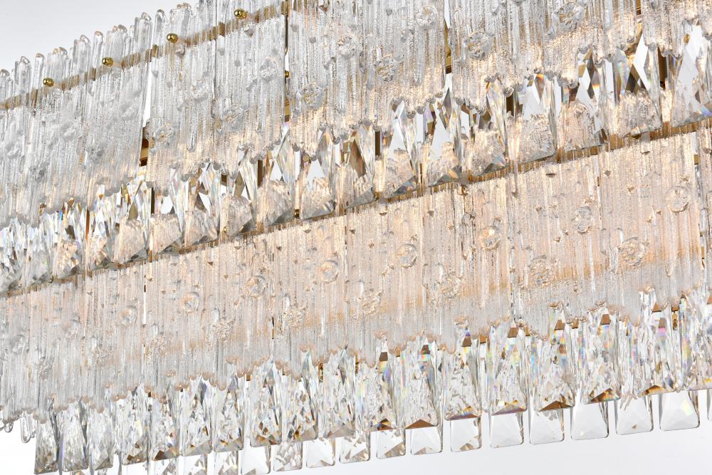 The combination of clear crystals and textured glass creates a sophisticated light play, perfect for setting an elegant mood.