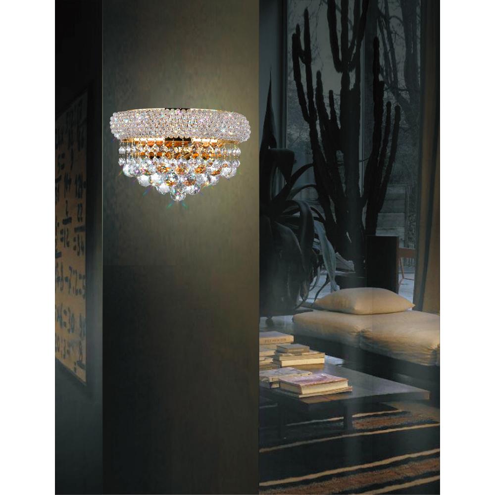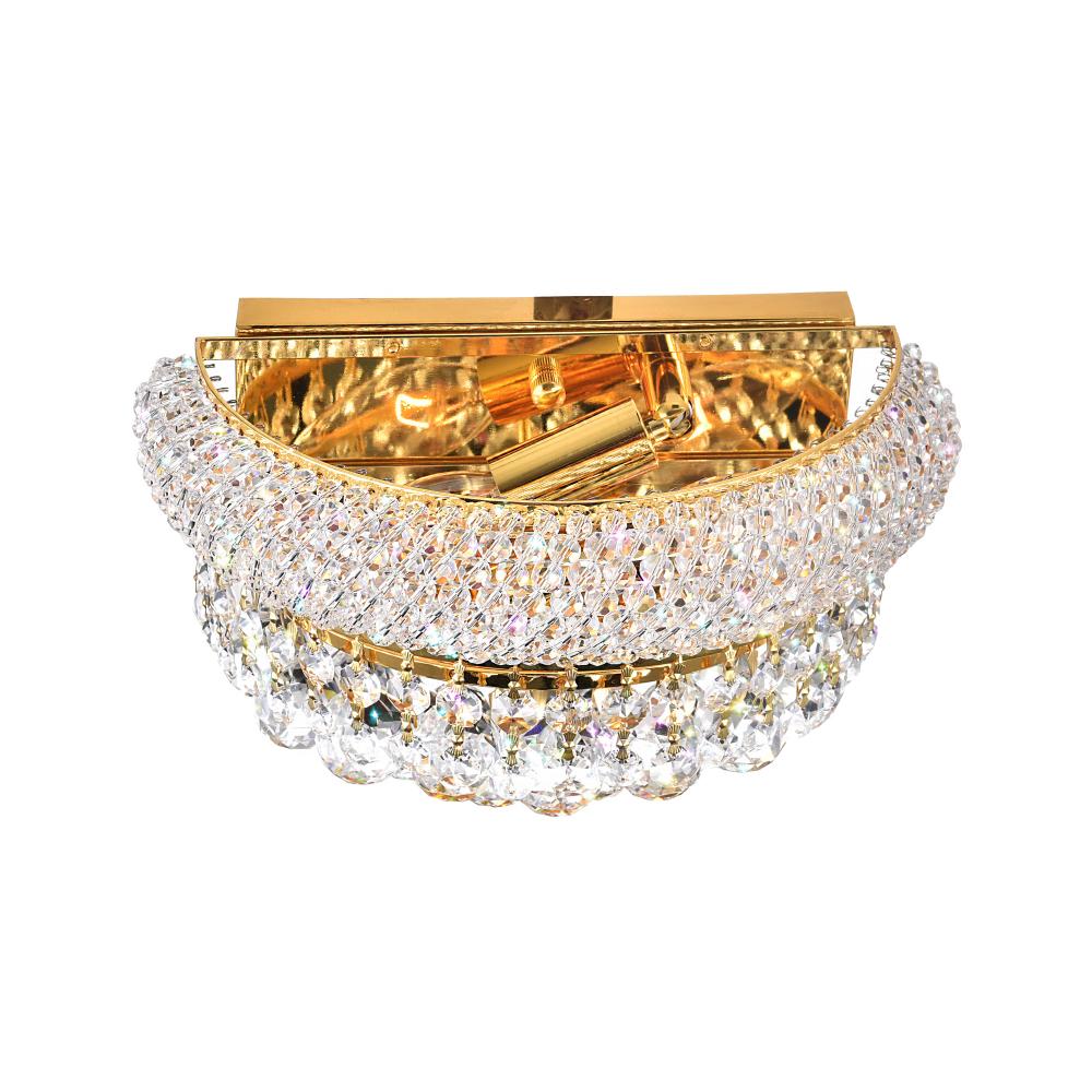 Make a room glow with layered lighting. Install the Empire 2-Light Wall Sconce in Gold in your entryway, hallway, or living room and let its glistening glow deliver just the right amount of illuminationsoft enough to avoid glare yet bright enough to set the mood. Inspired by traditional chandeliers, this 12-inch-wide sconce doubles as decor, blending vintage charm with modern functionality. Finish: Gold Bulb Type: 2 x E12 Candelabra (Bulbs Not Included) Warranty: 1 Year Style: Traditional/Transitional Installation: Hardwired, Wall Mount