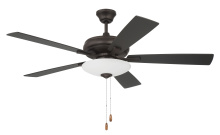 The Craftmade Eos 52" ceiling fan with white frost glass low profile bowl three light kit including dimmable LED bulbs features a smooth, 3-speed, reversible motor, updated blade arms, and reversible custom 52" blades. Optional remote controls are available (Sold Separately).