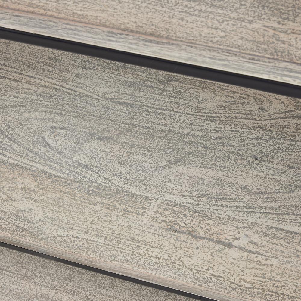 Inspired by industrial style yet equally at home in a contemporary space, a balanced etagere suspends smoke mango wood within a framework of blackened bronze iron. The shelving floats between linear and curved elements with a waterfall effect. Finish will vary.