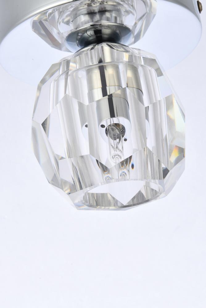 Each lamp is encased in a solid faceted clear crystal diffuser