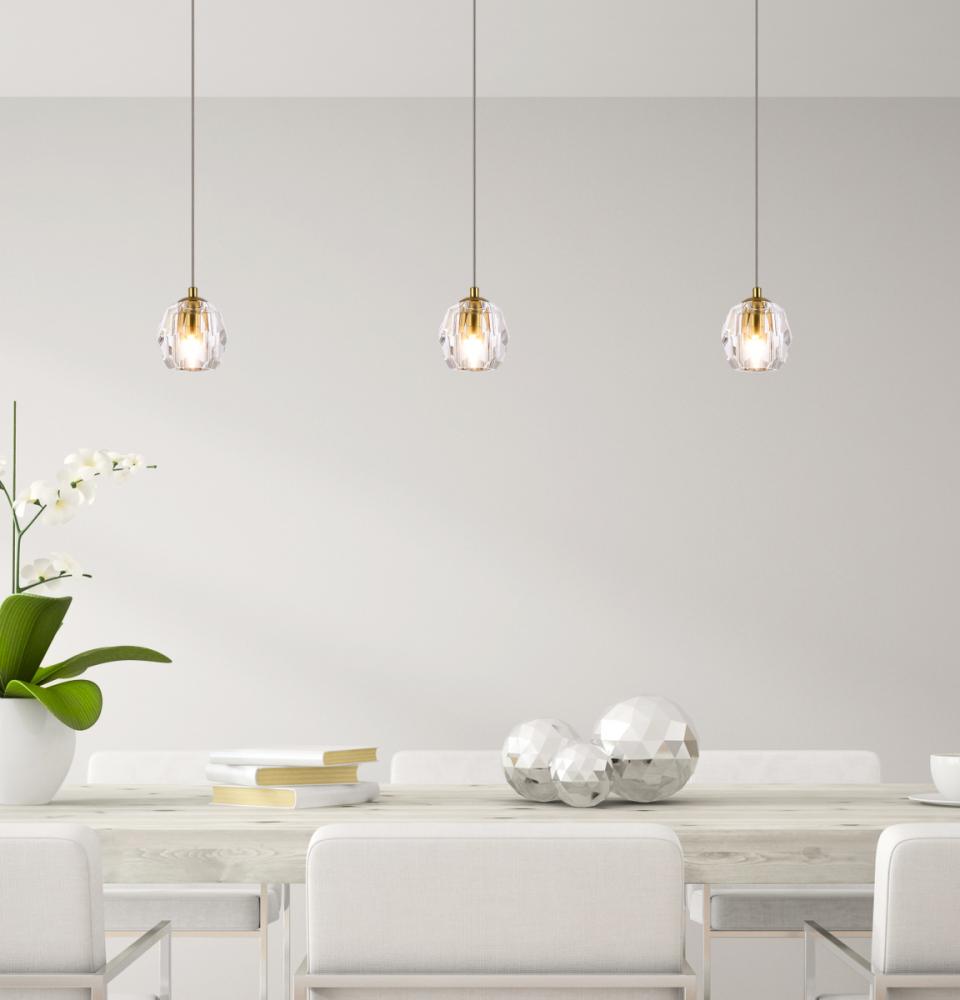 Like enchanting bubbles of air surfacing from the fathoms of the deep sea, the Eren contemporary hanging pendant adds lighting with richness and grace. The layering of clear crystal globes offer softened, harmonious light to match a variety of home décor. Creating an environment of sophistication, this beautiful hanging pendant adds drops of magic to express your refined style.