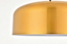 • Cylinder shaped satin gold finish aluminum shade with white finish interior