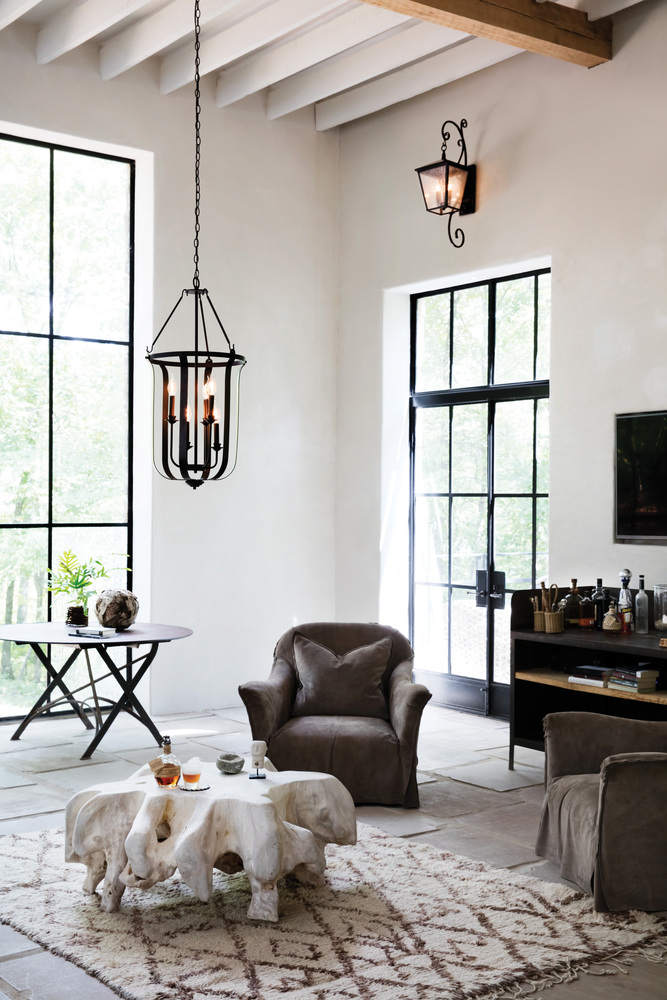 Trellis is a traditional European lantern design in an Aged Zinc finish with clear glass or Regency Bronze with clear seedy glass. The large scroll arm detail, cast loop finial and true rivet detail create a refined elegance.