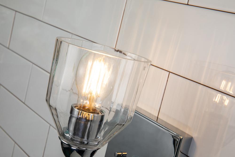The Felice 1-Light Vanity Sconce blends classic and modern design with a polished chrome finish, gold finial, and dome-shaped glass shade. Perfect for bathrooms or artwork, its timeless style adds elegance to any space. Damp-rated and easy to install.