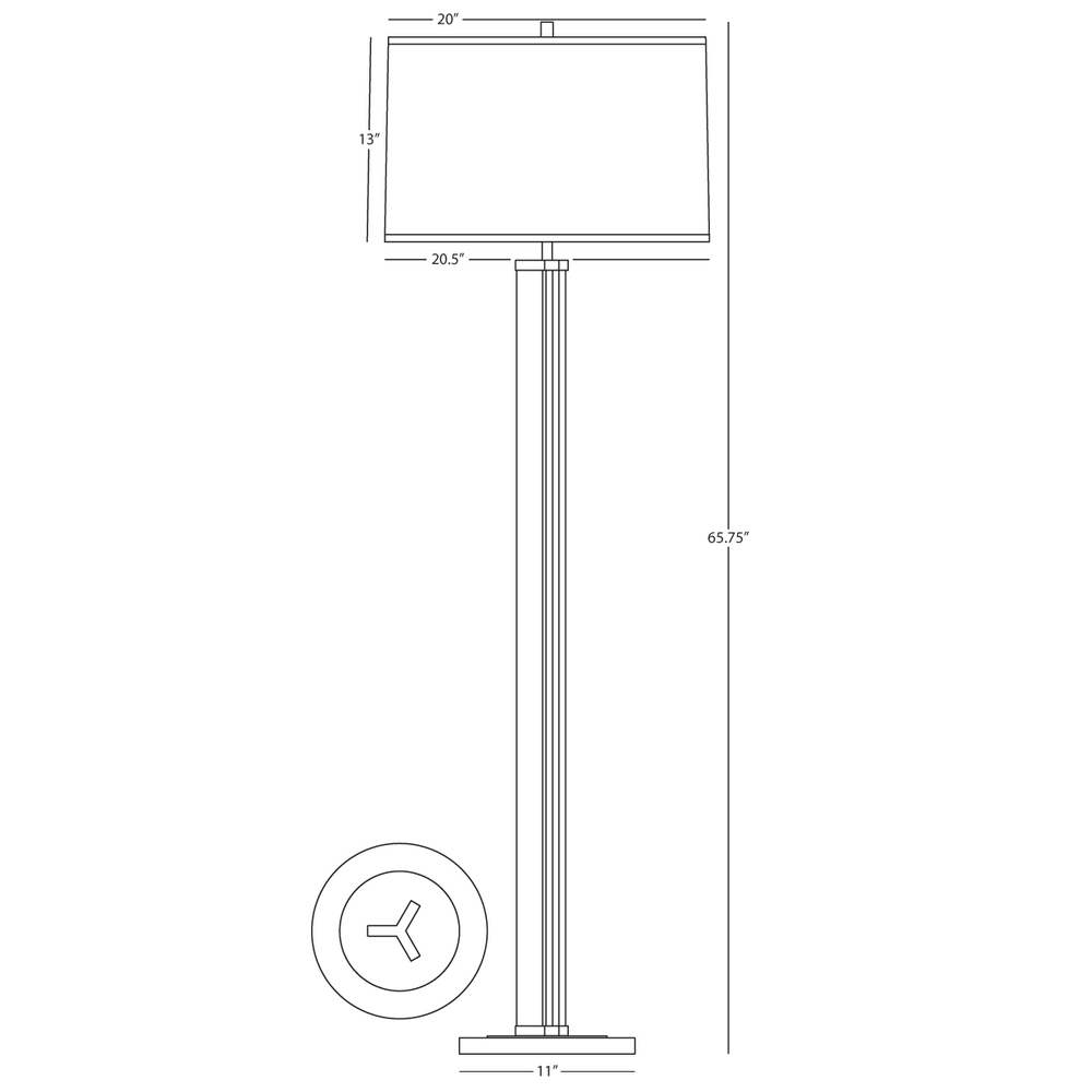 Clear Glass And Polished Nickel Fineas Floor Lamp with Ascot White Fabric Shade - Our Fineas collection features decadent materials such as alabaster, travertine, seeded glass and crystal, creating attractive contrasts with metal accents. Fineas is sure to add a graceful and refined touch to your space.