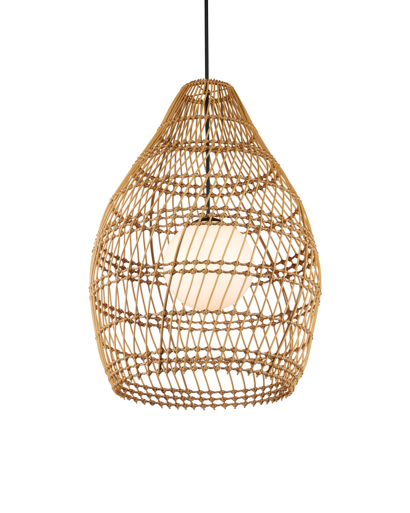 The Fishtrap Outdoor Pendant has a shade made of all-weather wicker that can easily withstand the elements, as will the metal hardware in a black powder-coated finish. The sense of movement achieved by the slant of the weave makes the pear-shaped shade seem as if it is spinning. The single-light pendant is wet location-tested, which makes it a shoe-in for lighting patios and porches. This is a true statement piece for even the largest of outdoor rooms. Adjustable from 46.75" to 88.75" with use of included chain/rod kit/cable. If your space calls for a longer drop, additional chain/rods/cable is available for purchase.