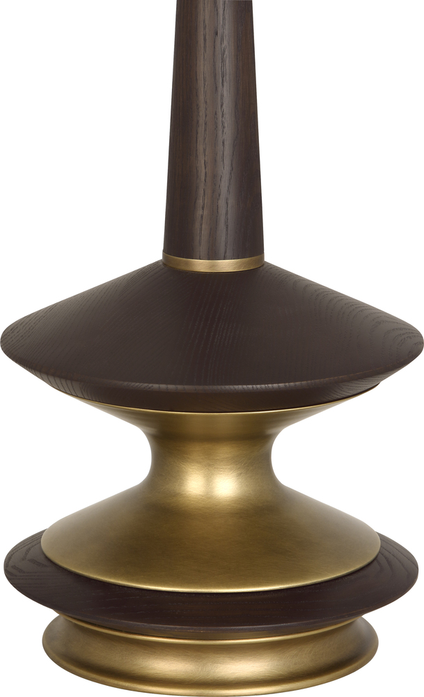 Warm Brass Finish with Dark Walnut Accents Fletcher Table Lamp with Fondine Fabric Shade - Dark walnut wood and metal, tapers and curves--Fletcher is a handsome collection, to be sure Inspired by Mid-Century Modern design, we love the combination of materials and organic shapes that give these pieces a genteel and timeless look.