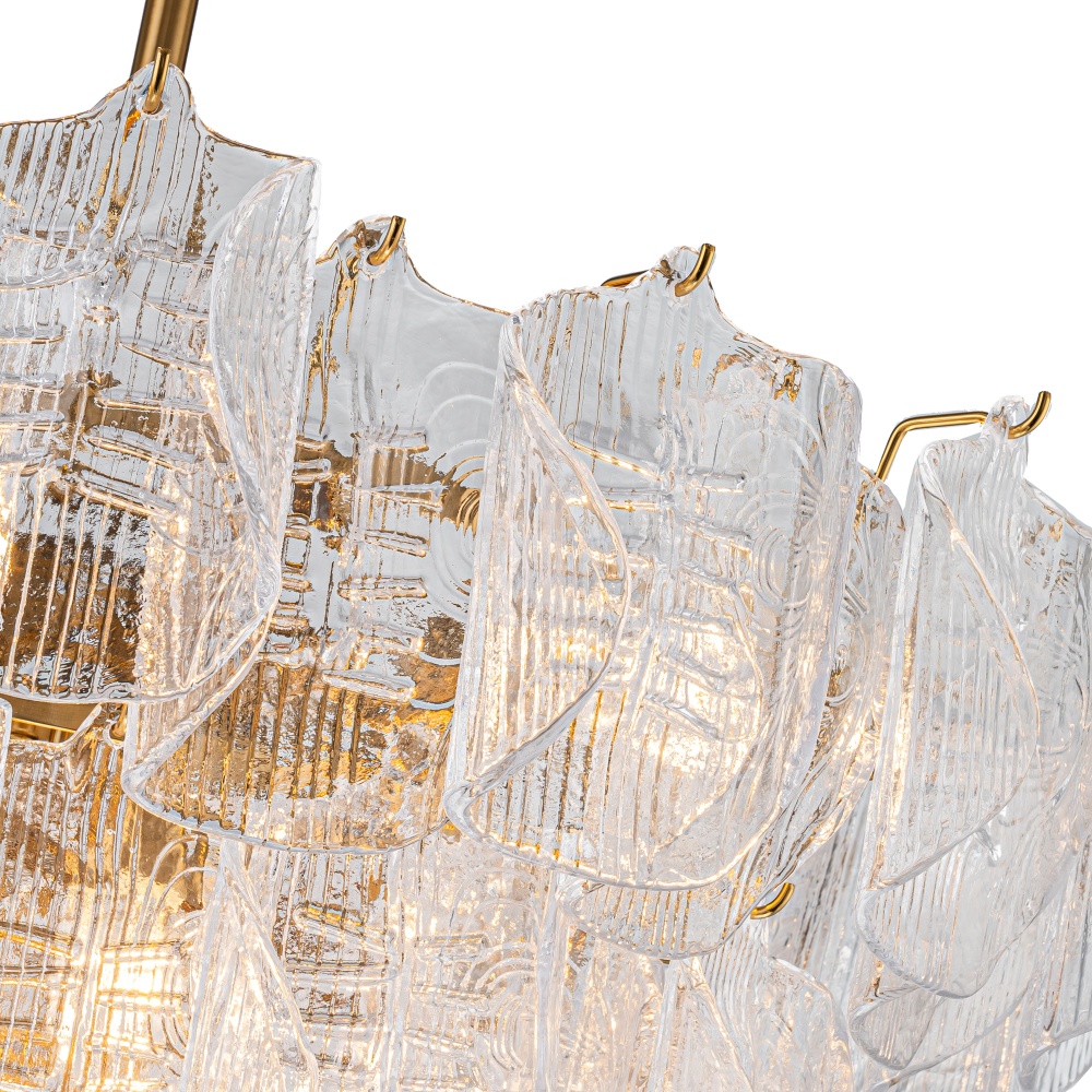 The Florentine Winds Collection captures the poetry of wind sweeping through an Italian courtyard - soft, fluid, and full of movement. Sculpted glass petals ripple with texture, glowing gently as they cascade in layered tiers. Warm, artisan-inspired metalwork anchors each piece, creating a romantic statement that feels both timeless and alive. A celebration of motion, light, and European elegance