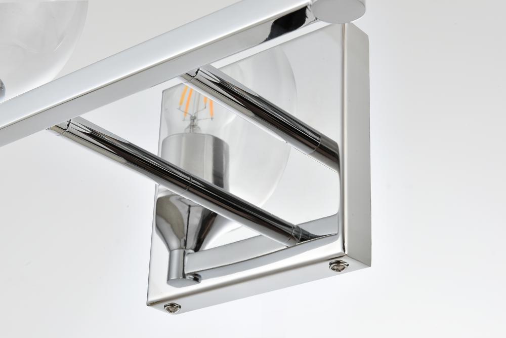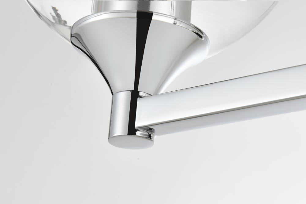 Defined by a sleek metal arm extends to suspend the clear pear-shaped glass shade. A contemporary stunner, it shows off the straight line details from the backplate and the streamline thick metal arm. Compatible with dimmers, so you'll have the right amount of light in any given time of the day. Completely versatile, you can place this wall light as an uplight or downlight. Rated for use in damp locations, this will work perfectly over a vanity in your bathroom.