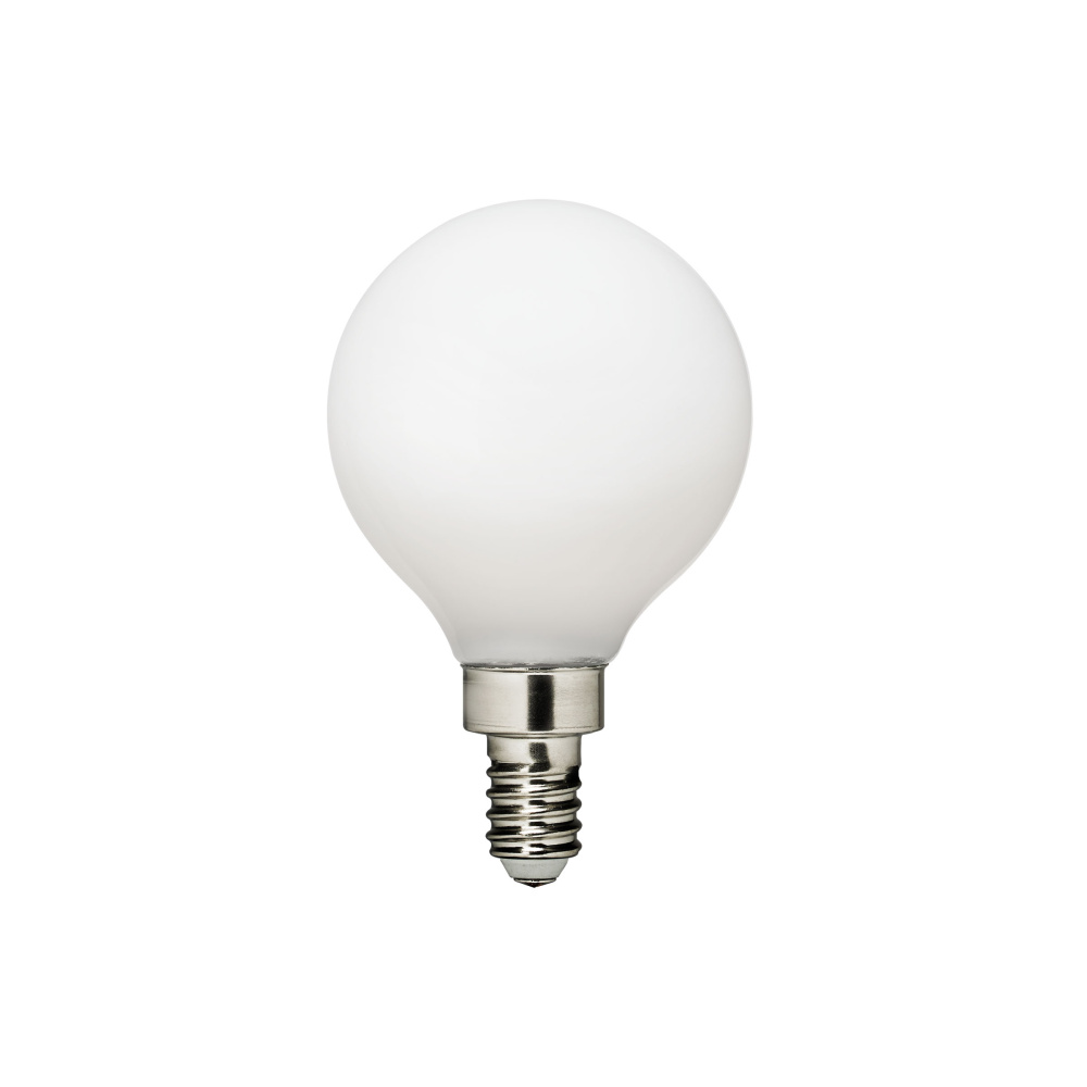 Frosted G16.5 4W LED delivering 350 lumens of soft 2700K light; smooth, decorative illumination.