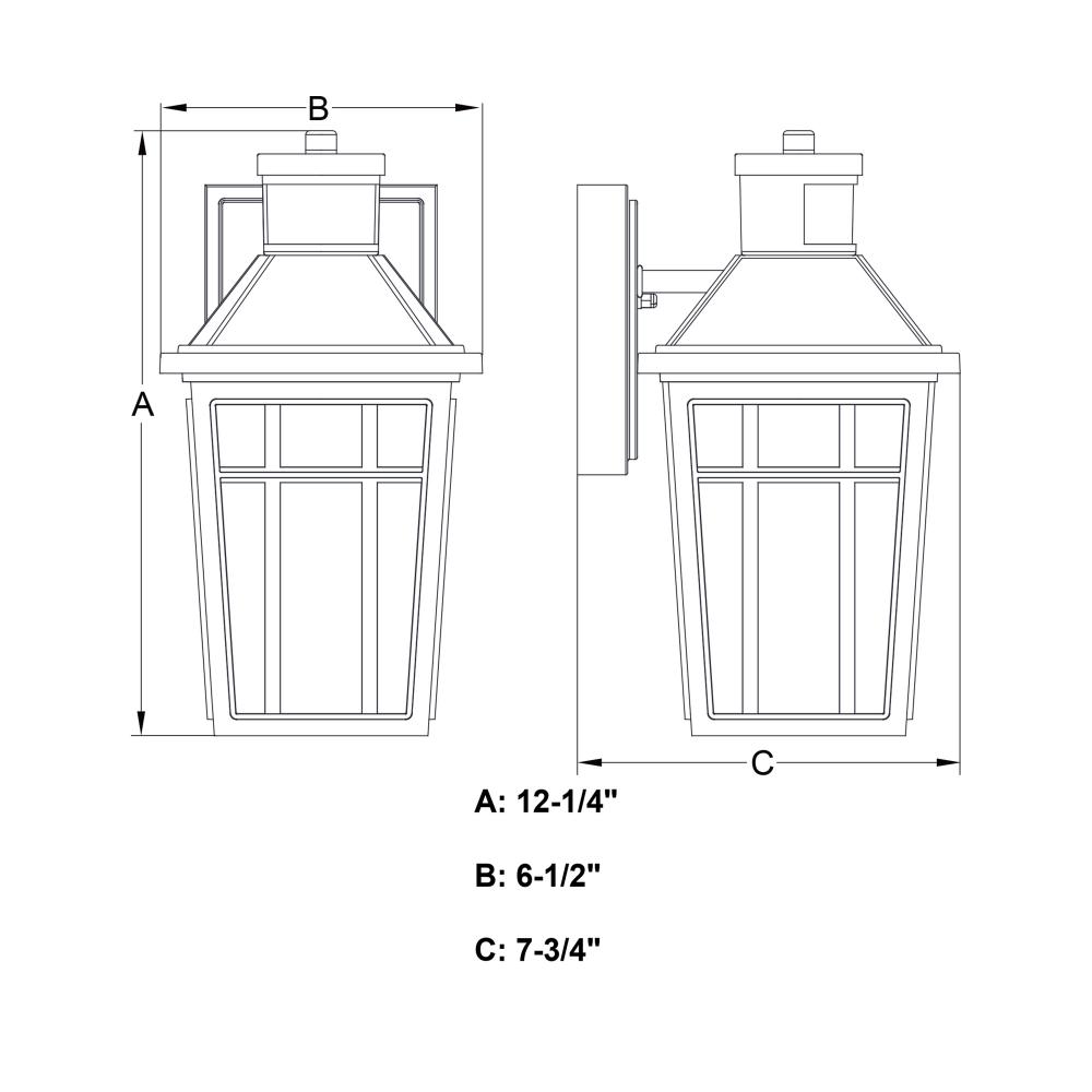 6.5-in W x 12.25-in H x 7.75-in D with 4.72-in W x 5.91-in H backplate, Top of light to center of backplate = 2.38-in