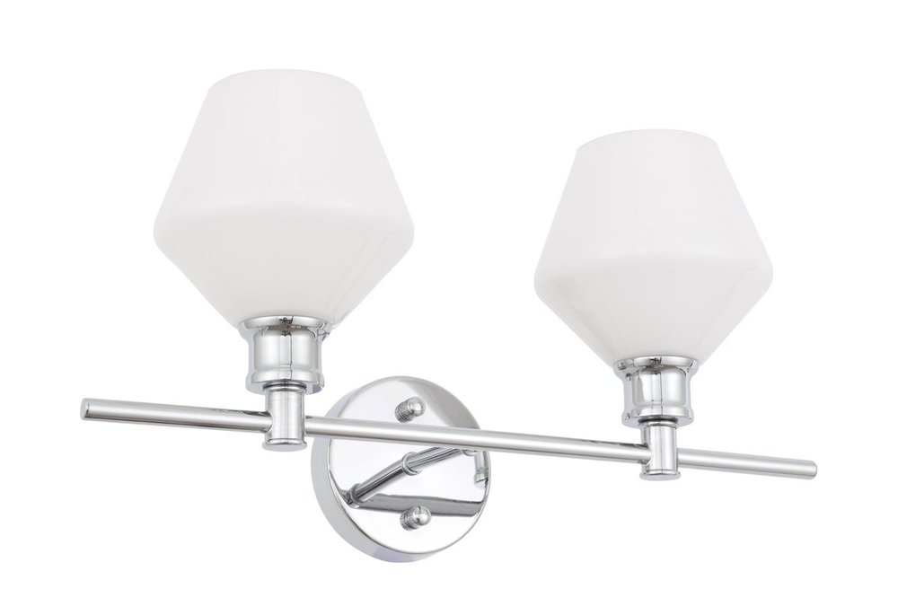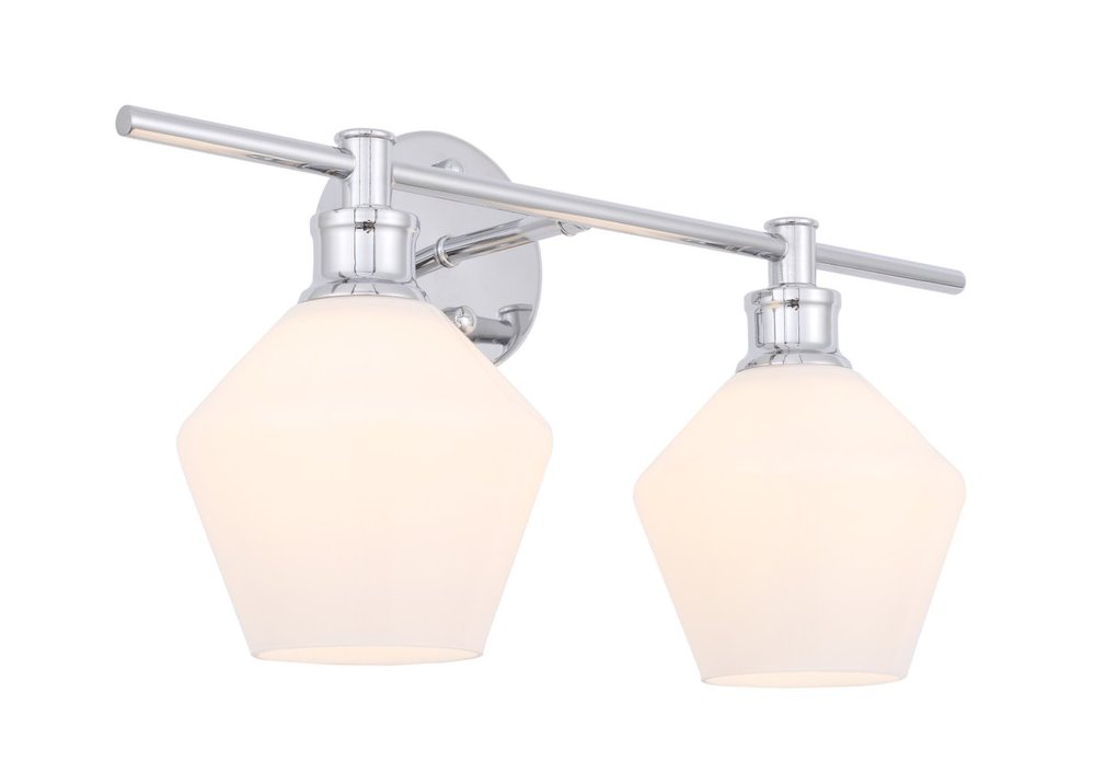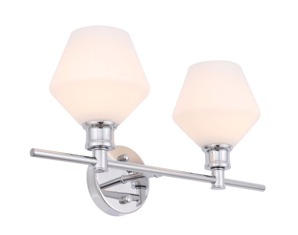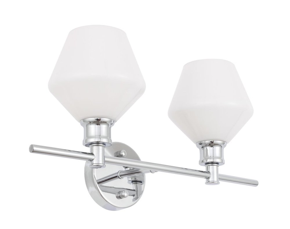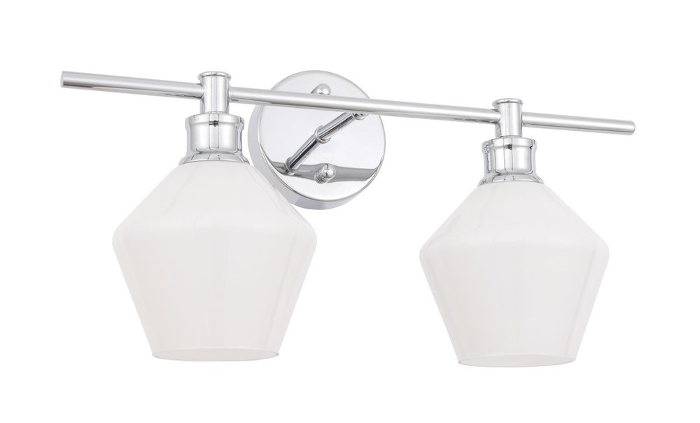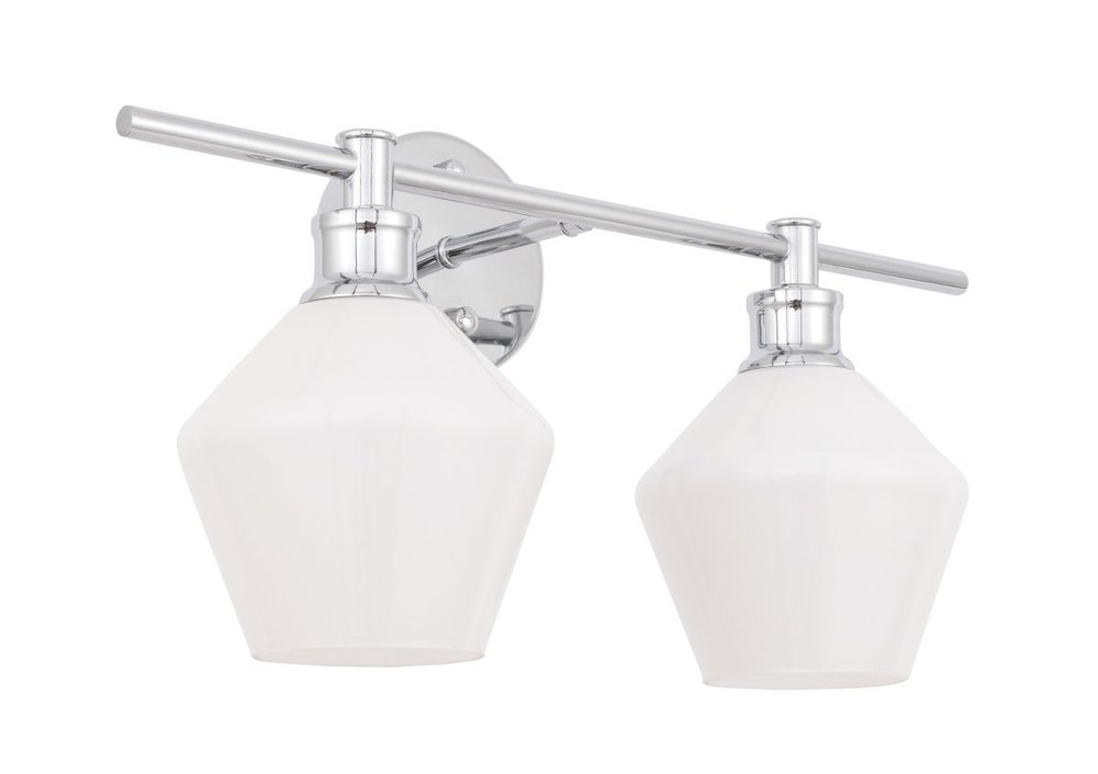 The Gene Collection of lights will be sure to have your guests admire your modern sense of style with the beautiful simplicity of its shape and form. The clean lines of the rhombus shaped shades create the juxtaposition of intricate simplicity, achieving a style that has both form and function. This wall lamp can be oriented facing up or down, but will always illuminate your room. Available in a brass, chrome, or black finish with either a clear or frosted rhombus glass shade, it is the perfect wall lamp to enhance your bathroom, foyer, or hallways, allowing you to always live in sleek contemporary style (light bulbs not included).