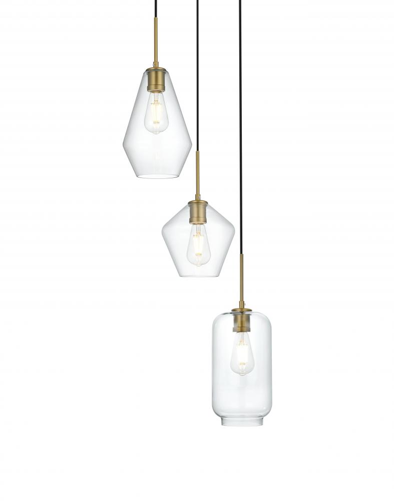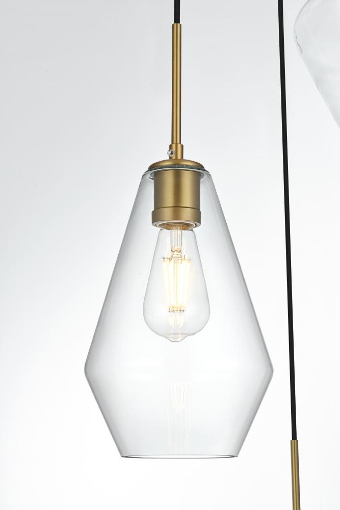 The Gene Collection of lights will be sure to have your guests admire your modern sense of style with the beautiful simplicity of its shape and form. The canopy supports three pendant lights that can be adjusted to different heights in order to create dramatic levels of lights and shadows. The pendant's clean lines created by the cords and diamond shaped shades makes this the perfect lighting addition to any home that is in need of a chic modern flair. Available in a satin gold, brass, chrome, or black finish, with either a clear or frosted diamond glass shade, enhance your dining room, living room, or bedroom with the Gene Collection hanging pendant and live in sleek contemporary style (light bulbs not included).