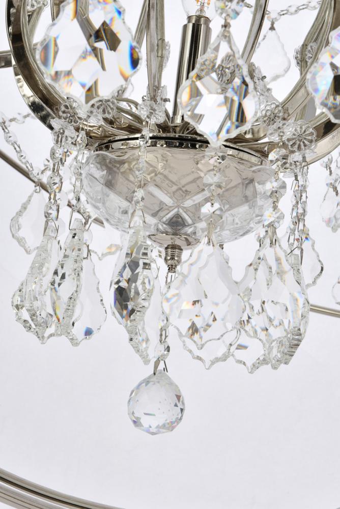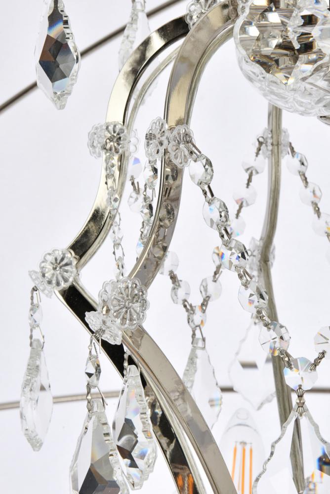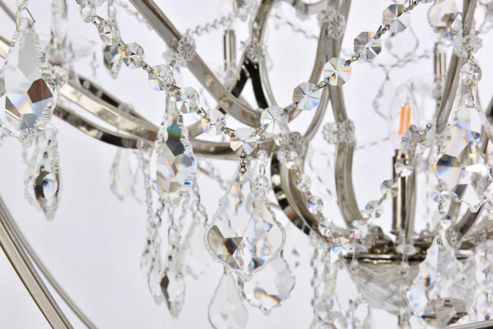 Royal-cut clear crystals and 25 candelabras beautifully complement the polished-nickel finish