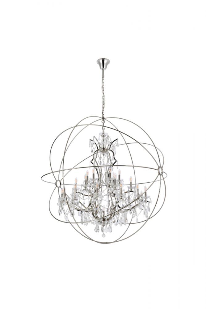 Make a statement or set the mood in your living room, dining room, or foyer with the transitional style of a Geneva chandelier. The Geneva collection is an eye-catching design that starts with the Old World feel of a classic crystal chandelier and then suspends it in a lamp body that takes on the New Age look of a gyroscope. Graceful candelabras are embellished with several sizes and layers of royal-cut crystals in clear, golden teak, or Silver shade that transform into a luminous globe when framed in a sphere finished in dark bronze, polished nickel, or rustic intent.
