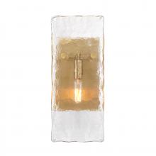 Bring a beautiful ocean-inspired lighting look to your home with the Savoy House Genry 1-light sconce. It is decorated with a rippling pane of handmade glass and finished in Warm Brass. Genry is 13" in height, 5.5" in width and extends 5.5" from the wall. It uses one candelabra size bulb of up to 60 watts. The bulb is not included. This sconce is damp area rated.