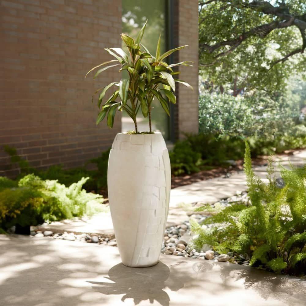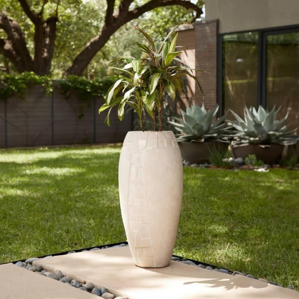 Inspired by Art Nouveau-style jewelry depicting a dragonfly, our terracotta planter's hand-carved eggshell finish surface offers a harmonious balance of figural motifs and natural elements. This intriguing texture is mirrored front and back. A removable rubber stopper is at the bottom for easy drainage. Finish will vary.