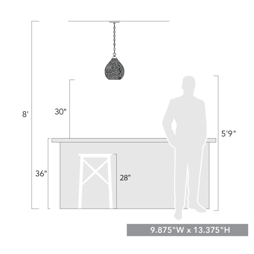 Elevate your space with modern elegance through the Golden Lighting Ariella 1-light Pendant. Featuring a glass shade and a Matte Black frame, it creates a welcoming atmosphere in any room. The glass shade showcases a Hammered Clear Glass design, which creates a sparkling, refractive light effect. This artisanal touch adds a dynamic flair to your lighting, casting beautifully dappled patterns on surrounding surfaces. With a timeless Matte Black finish, this pendant offers a smooth, sophisticated look that complements various decor styles—from minimalist to contemporary. Ideal for kitchens, dining rooms, and entryways, this fixture is Damp Location Rated, making it suitable for covered and semi-enclosed spaces with occasional moisture. Designed to be Sloped-Ceiling Compatible, you can easily adjust the height from a minimum of 16.875 inches to a maximum of 88.875 inches for customized installation. Overall Dimensions: 9.88"W x 13.38"H x 9.88"D. Requires 1 E26 Medium base bulb (not included), with a maximum wattage of 60. Bring quality craftsmanship and captivating light to your home with this stylish pendant.