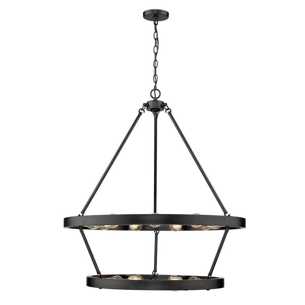 Golden Lighting Castile 15-light 2-tier Chandelier (9+6) in Matte Black