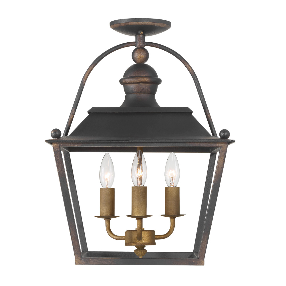 Golden Lighting Christoff 3-light Semi-Flush Mount in Antique Black Iron