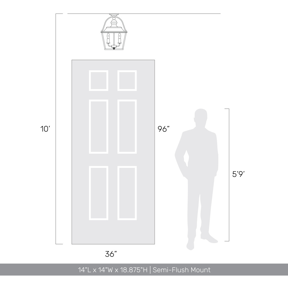 Bring traditional elegance into your home with the Golden Lighting Christoff 3-light Semi-Flush Mount. It creates a welcoming atmosphere with its classic design and durable construction, suitable for areas with mid-height ceilings. The piece features an authentic look without a shade, allowing the ambiance to radiate freely. Each fixture showcases a richly textured Antique Black Iron finish, revealing glimpses of a warm, antiqued gold base beneath the rugged surface, providing a vintage charm. Perfectly versatile, this fixture is damp location rated, suitable for covered spaces like bathrooms and laundry rooms, while its convertible construction allows for flexible installation on varying ceiling heights. Overall Dimensions: 14"W x 18.88"H x 14"D. Requires 3 E12 Candelabra base bulbs (not included), max 60 wattage per bulb. Experience a blend of artistry and quality craftsmanship with this eye-catching centerpiece, capturing the essence of age and handcrafted character in your home.