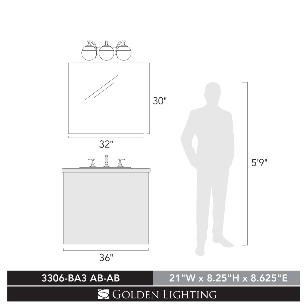 Transform your bathroom with the Golden Lighting Dixon 3-light Vanity. Featuring clear glass shades and a Matte Black finish, it creates a stylish atmosphere. The polished glass shades showcase brilliant, unobstructed light, enhancing your daily routine with beautiful illumination. The Matte Black finish is timeless and versatile, offering a strong graphic quality that suits various decor styles. This vanity light is damp location rated, making it suitable for bathrooms and areas exposed to occasional moisture. Overall Dimensions: 21"W x 8.25"H x 8.63"D, Requires 3 E26 Medium base bulbs (not included) with a maximum wattage of 60 each. Elevate your space with this quality fixture that embodies sophisticated retro style.