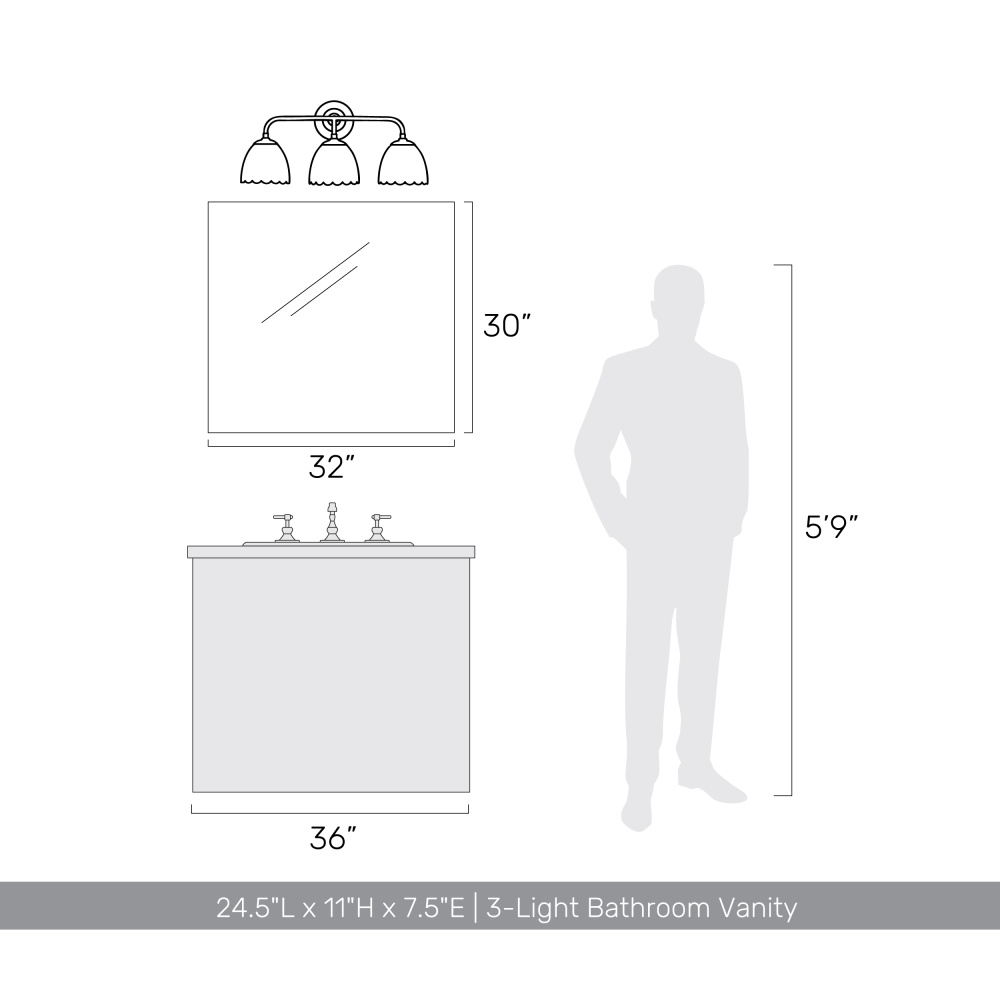 Bring traditional elegance into your home with the Golden Lighting Dorinda 3-light Vanity in Brushed Champagne Brass. Featuring a glass shade and a brushed champagne brass frame, it creates a welcoming atmosphere. The opal glass shade diffuses light evenly, delivering a soft, glare-free glow that enhances the space. The chic finish, a blend of warmth and softness, provides a touch of quiet luxury to your interior. Perfect for bathrooms, this light is damp location rated, suitable for covered and semi-enclosed spaces, like bathrooms and laundry rooms. Requires 3 E26 medium base bulbs (not included) with a maximum wattage of 100. Overall dimensions are 24.5"W x 11"H x 7.5"D. Upgrade your home with quality and stylish lighting that complements your decor.