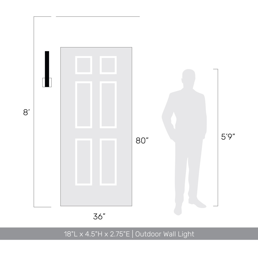 Elevate your outdoor space with the Golden Lighting Enso Integrated LED 18" Outdoor Wall in Smooth Grey. This sleek, minimalist design illuminates your area with a statement of modern sophistication. With no shade, the fixture showcases a clean, geometric form enhanced by integrated LED technology, offering brilliant, energy-efficient illumination that emphasizes contemporary design. The smooth grey finish carries a rich, medium-dark hue with a linear fluted texture that plays with light and shadow, providing a refined addition to your outdoor decor. Perfect for entryways, patios, and garages, this outdoor wall light is wet location rated, ensuring durability in exposed outdoor areas. Integrated LED technology provides a long-lasting, dimmable light source rated for 369.5 lumens. Overall dimensions are 18"W x 4.5"H x 2.75"D. Enjoy the perfect blend of safety and elegance with this quality outdoor fixture.