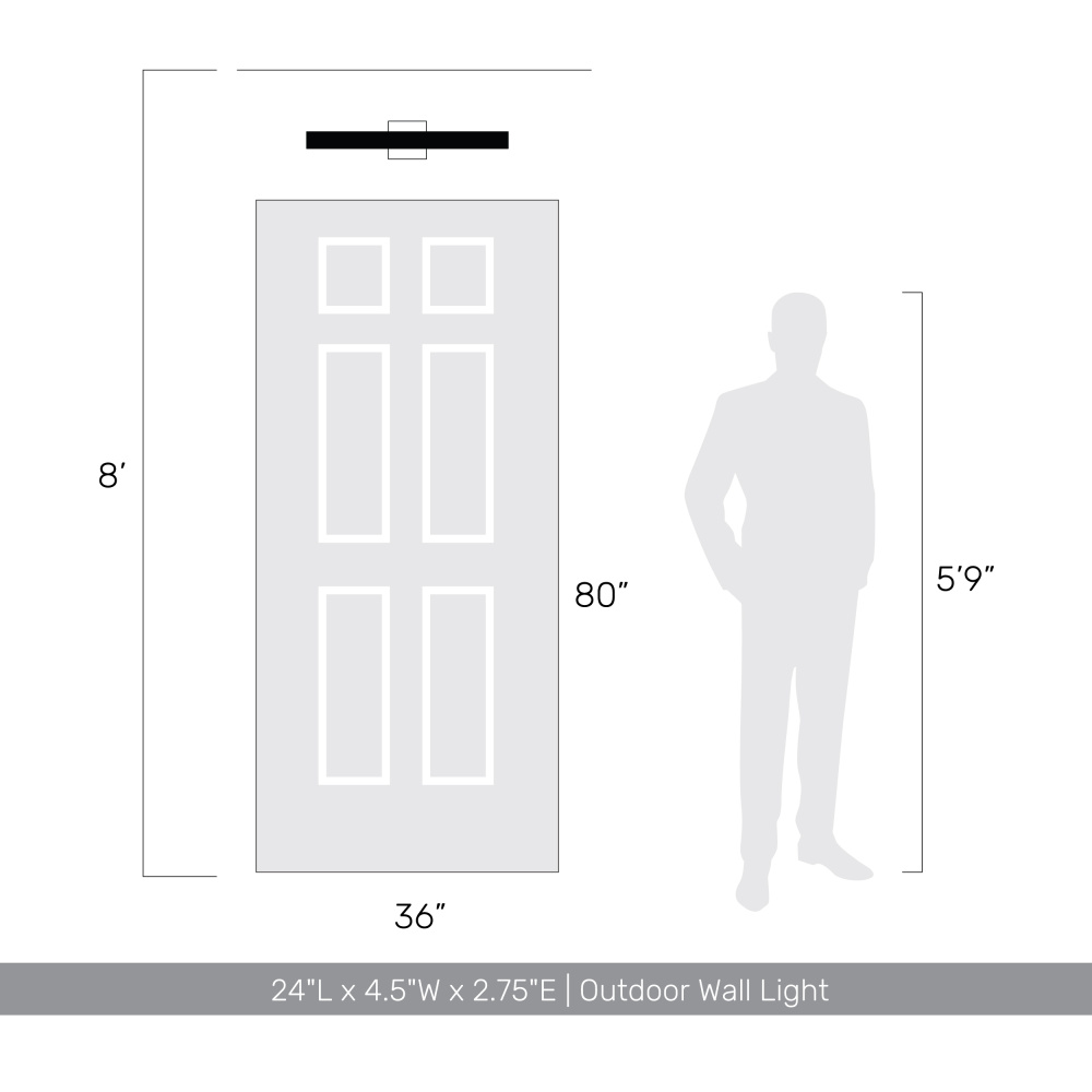 Bring modern elegance into your home with the Golden Lighting Enso Integrated LED 24" Outdoor Wall in Textured Black. Featuring a durable design and textured black finish, it creates a welcoming atmosphere. \n\nEnjoy the sleek, linear form accentuated by a fine, linear fluted texture, enhancing the play of light and shadow. This minimalist fixture is built for the outdoors and is perfect for contemporary spaces. \n\nThe textured black finish features a sophisticated dark charcoal hue with a non-reflective matte surface, adding depth and modern charm. \n\nFunctional and inviting at entryways, patios, and garage doors, this fixture is also Wet Location Rated, ensuring it withstands the elements. \n\nWith overall dimensions of 24"W x 4.5"H x 2.75"D, this outdoor wall light boasts integrated LED technology with 713.7 lumens, allowing you to choose from five color temperatures, from a cozy 2700K to a crisp 5000K. \n\nClose with the perfect blend of style and durability, ideal for transforming any outdoor space with lasting quality.