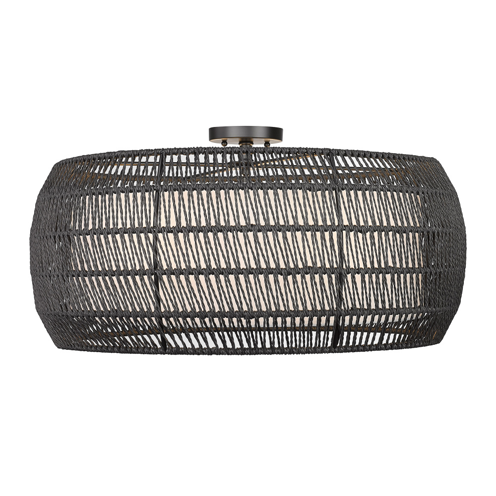 Golden Lighting Everly 6-light Semi-Flush Mount in Matte Black and Modern Black Rattan shade
