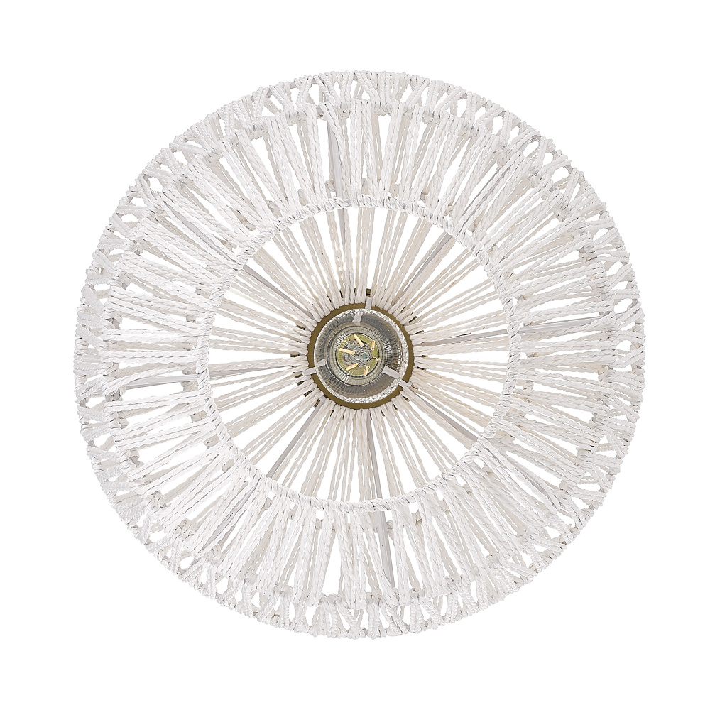 Bring boho elegance into your home with the Golden Lighting Florence 1-light Pendant. Featuring a Rope shade and a Brushed Champagne Brass frame, it creates a welcoming atmosphere. The Rope shade, made from Bleached White Raphia, offers a clean, bright, and textural appearance that brings a breezy, coastal vibe to any design. The epitome of modern sophistication, the Brushed Champagne Brass finish presents an understated elegance, making it a perfect choice for contemporary spaces. This pendant light is damp location rated, suitable for covered areas with occasional moisture, and is easily adjustable in height, making installation on angled ceilings a breeze. Dimensions of this fixture are 14"W x 16.88"H x 14"D, requiring one E26 Medium base bulb (not included) with a maximum wattage of 100. Experience quality and style with this artisanal lighting piece.