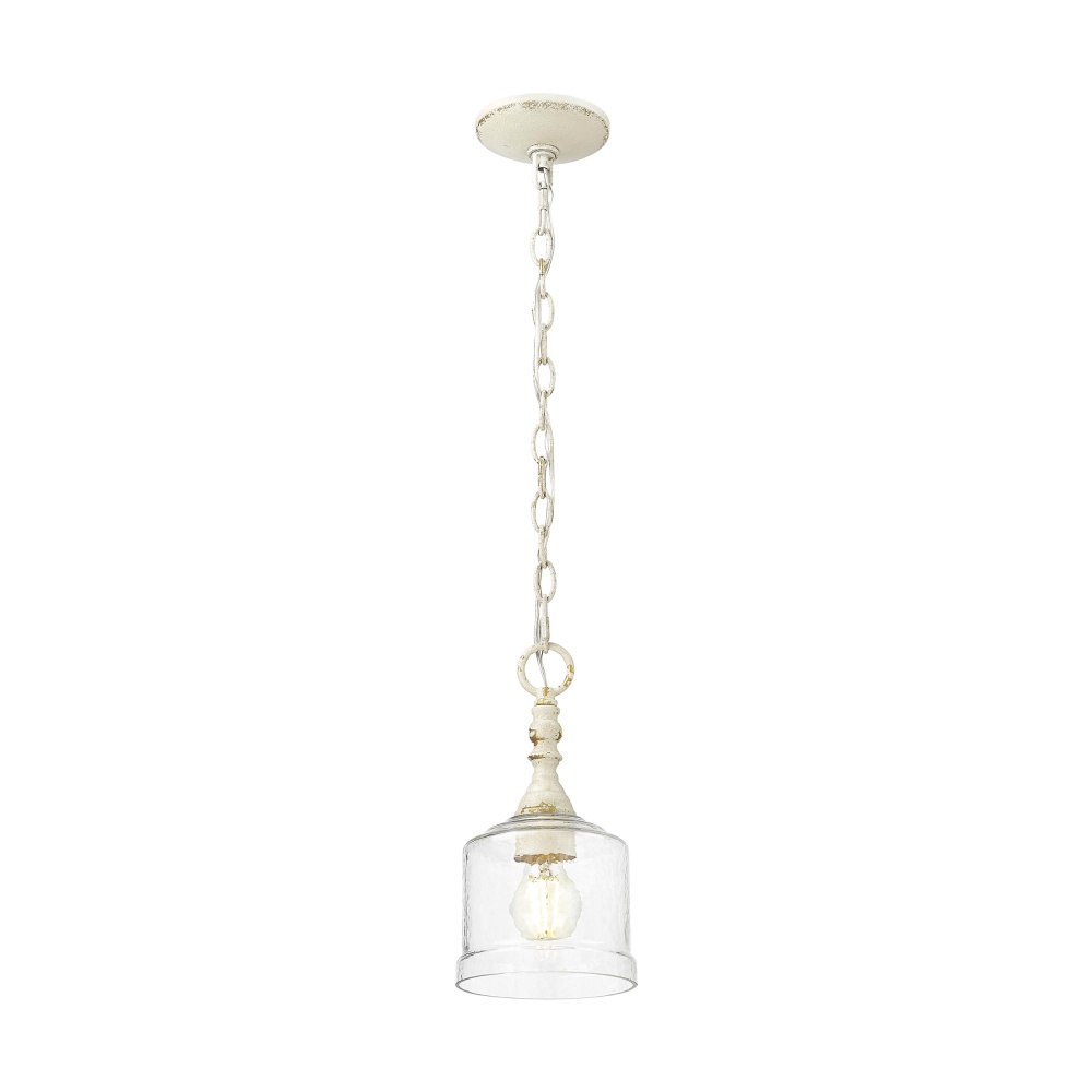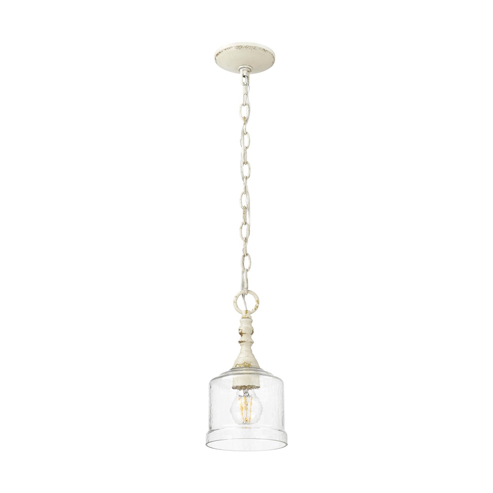 Golden Lighting Keating 1-light Pendant in Antique Ivory and Hammered Water Glass