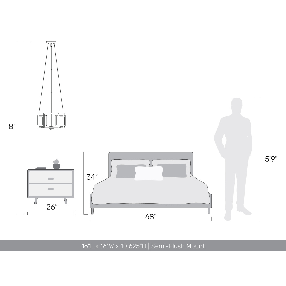 Elevate your interiors with the Golden Lighting Marco 4-light Semi-Flush Mount. Showcasing a glass shade and an elegant Pewter frame, it delivers an inviting glow that enhances your living space. With its clear glass shade, this fixture provides unobstructed light, emphasizing both the bulb and the artistry of the design. The polished texture allows light to diffuse softly, creating a warm ambiance throughout your home. The Pewter finish, with its medium-grey hue and subtle warmth, offers a timeless look that complements both classic and contemporary interiors. Created with a durable electroplating process, the finish is both sophisticated and durable, designed to withstand the test of time. Ideal for entryways, bedrooms, kitchens, and living areas with mid-height ceilings, this fixture is Damp Location Rated for areas with occasional moisture. The convertible design allows for adjustable height, accommodating both sloped and flat ceilings effortlessly. Overall Dimensions: 16"W x 10.63"H x 16"D. Requires 4 E12 Candelabra base bulbs (not included) with a maximum wattage of 60 per bulb. With quality craftsmanship and a luxurious design, this semi-flush mount will add elegance and functionality to any room.