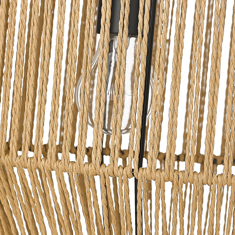 Bring nature-inspired elegance into your home with the Golden Lighting Marlee 3-light Pendant. Featuring a rope shade and a matte black frame, it creates a welcoming atmosphere. The natural raphia rope shade brings a breezy, coastal feel to any space, with an open-weave design that creates a beautiful interplay of light and shadow. Our Matte Black finish offers a timeless, non-reflective surface that delivers a sophisticated look, seamlessly fitting various decor styles from minimalist to contemporary. This fixture is dry location rated, making it perfect for indoor spaces such as kitchens, dining rooms, and hallways. Dimensions: 15"W x 21.63"H x 15"D, requiring 3 E26 medium base bulbs (not included, max 100 watts). Experience the intricate texture and warmth of the Golden Lighting Marlee, ideal for layered, stylish interiors.
