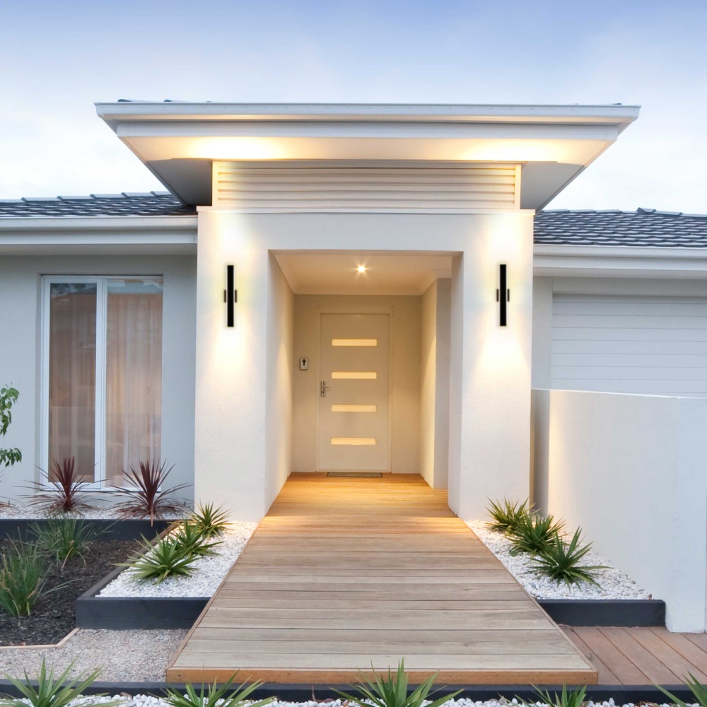 Bring modern elegance into your home with the Golden Lighting Obsidian Integrated LED 24in Outdoor Wall in Sand Black. It creates a welcoming atmosphere with its sleek design and sophisticated Sand Black finish. This outdoor wall sconce features a contemporary linear structure, providing a seamless wash of illumination, ideal for any modern exterior. Designed with a no shade structure, this fixture offers brilliant illumination without hindrance. The integrated LED technology ensures energy efficiency and longevity, producing a warm glow that highlights your outdoor spaces beautifully. The Sand Black finish features a deep, solid hue with a non-reflective matte surface, providing a textured appeal that absorbs light brilliantly. This durable, powder-coated aluminum construction is UV- and corrosion-resistant, ensuring longevity and high-quality performance both indoors and outdoors. Perfect for entryways, patios, and garage doors, this fixture is safety-rated for wet locations, designed to withstand various weather elements for versatile application. Overall dimensions are 4.75"W x 23.63"H x 1.88"D, and it features integrated LED technology that offers 830 lumens with a dimmable 3CCT option, allowing you to choose between three color temperatures for customizable ambiance. Elevate your outdoor experience with the quality craftsmanship of Golden Lighting, where functionality meets aesthetic appeal.